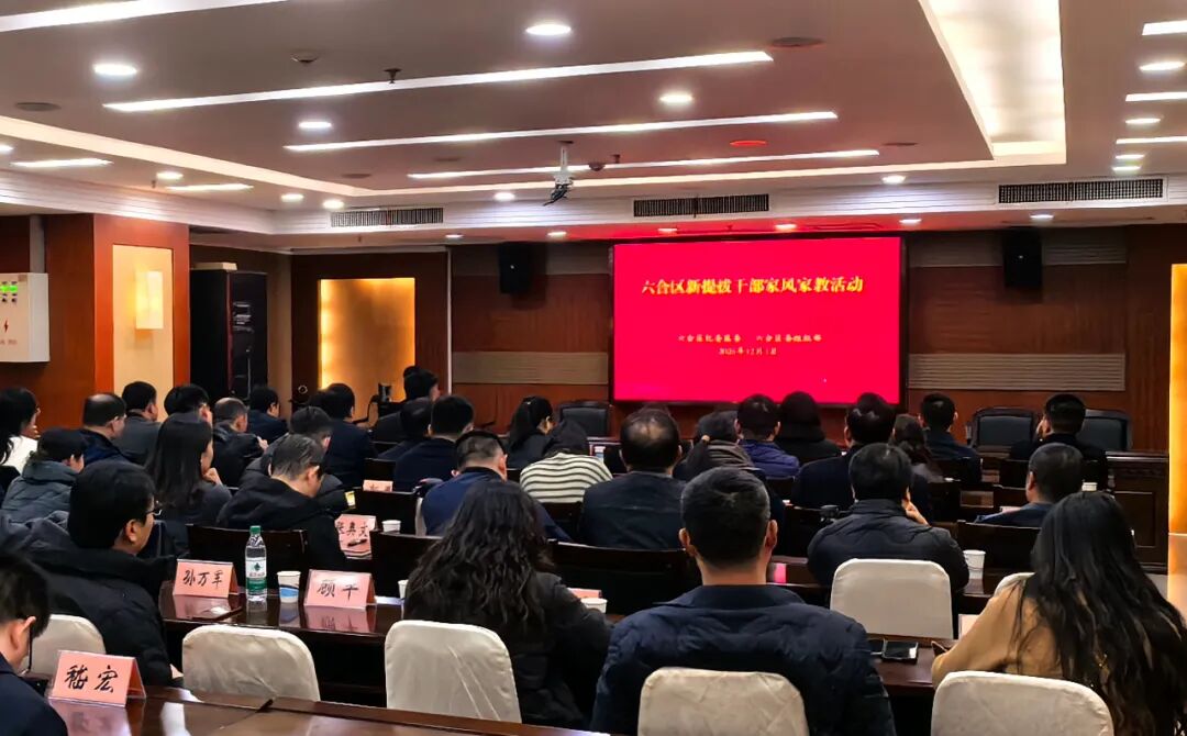 为进一步推动家庭家教家风建设走深走实,更好发挥家属在党风廉政建设方面的独特作用,六合区分批次开展新提拔干部家风家教系列活动。12月3日下午,区委组织部联合区纪委,以“警示教育筑防线 崇廉拒腐育家风”为主题举办了首场活动,2025年度部分新提拔干部及家属代表50余人参加。