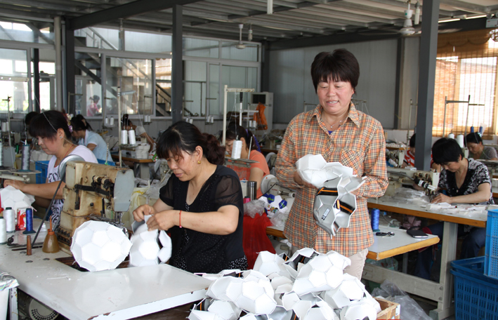 但足球来料加工是一项手工活,对加工人员的耐心和技术是一大考验。大伙儿由于第一次做很生疏,一天下来不到10元工资,有时候产品质量还不过关,几次退货,大家都有点心灰意冷,不想做了。