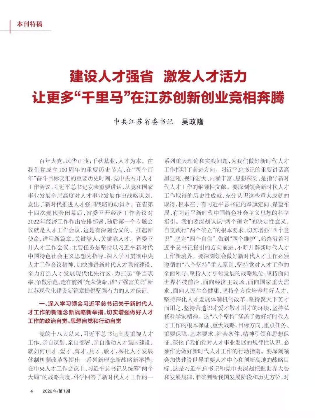 (本文摘自省委书记吴政隆2021年12月23日在省委人才工作会议上的讲话)