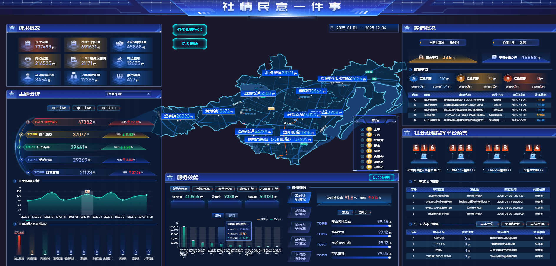 “十区十网”的深层价值,不止于网格的物理重构与力量的简单叠加,而是着眼于基层治理逻辑的根本性转变:网格要从被动承接任务的“行政末梢”,转变为主动发现问题、整合资源、协调各方的“治理枢纽”。数字赋能,让网格这个枢纽更加灵敏高效。在相城区社会治理指挥中心,“社情民意一件事”平台汇聚了网格巡查、12345热线等45个渠道的诉求。平台能进行智能分析,对苗头性、趋势性问题自动触发“蓝橙红”三色预警。今年7月,平台因某小区地库漏水诉求集中触发蓝色预警,随即生成提示单直派区住建局。区委分管领导召开专题会议,部门与属地联动,一个月内便完成维修方案制定与施工,成功化解了一起潜在的矛盾纠纷。“从预警到交办,从联席会商到现场督办,党建牵引下的跨部门协同,让基层最难啃的‘硬骨头’有了被系统性破解的可能。”一位参与其中的干部感慨。