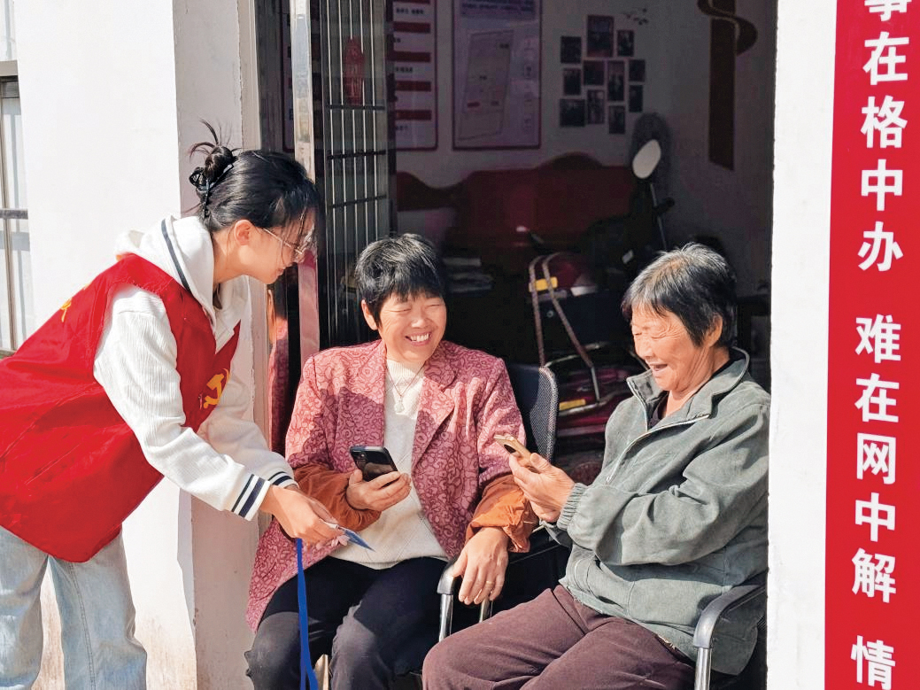 启东市线上推出“红网解忧码”,选派785名机关党员干部下沉网格,开展常态化服务。图为机关下沉的网格指导员向群众推广“红网解忧码”。江南摄