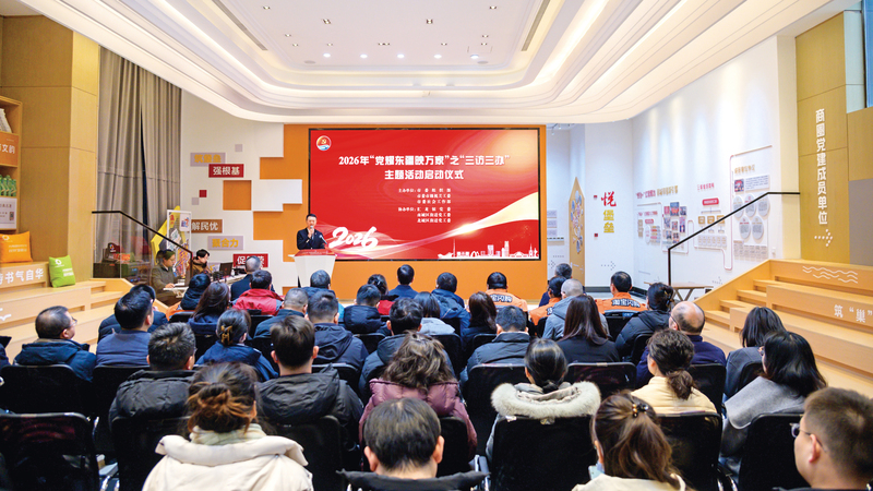 启东市打造“党耀东疆映万家”基层治理品牌,组织党员深入重点群体、企业,开展主题走访活动。图为2026年“党耀东疆映万家”之“三访三办”主题活动启动仪式。张建摄