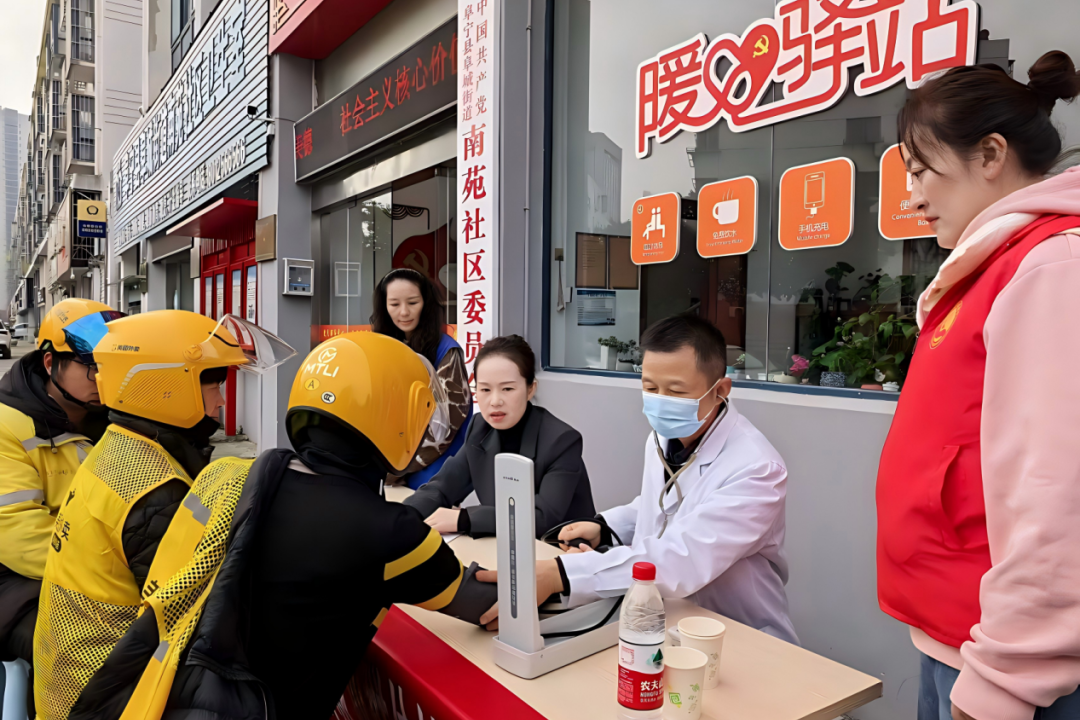 类似的实践在盐阜大地广泛开展:“我的盐城”App为市区暖心驿站开放线上电子地图;射阳县、盐城经济技术开发区在社区驿站推广配备智能换电柜、24小时开放等升级服务;盐南高新技术产业开发区在宝龙暖心驿站推出“小哥”食堂、法堂、医堂、学堂“四堂”服务,其中,“小哥食堂”每日错峰供应9.9元套餐30多份,“小哥医堂”联合多家医院推出优惠体检套餐等。
